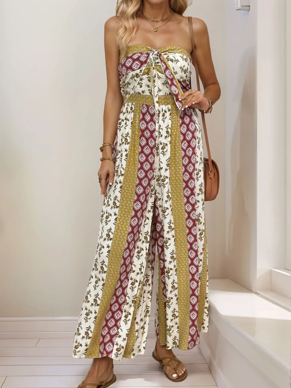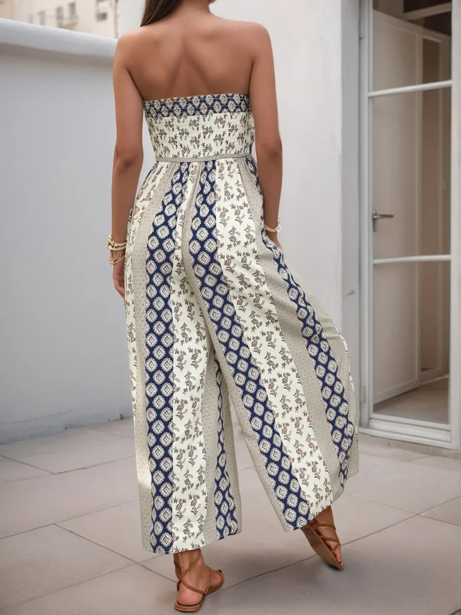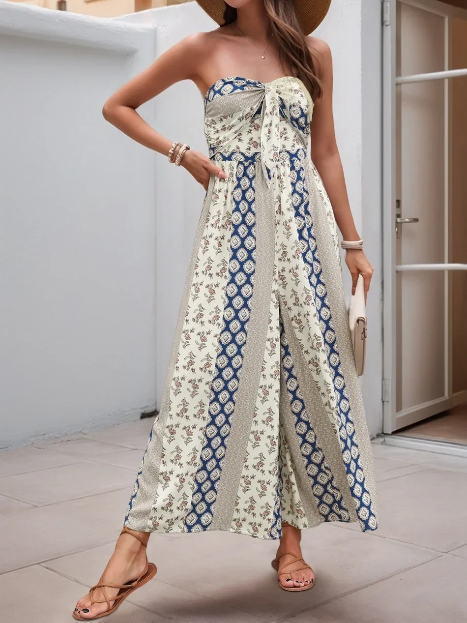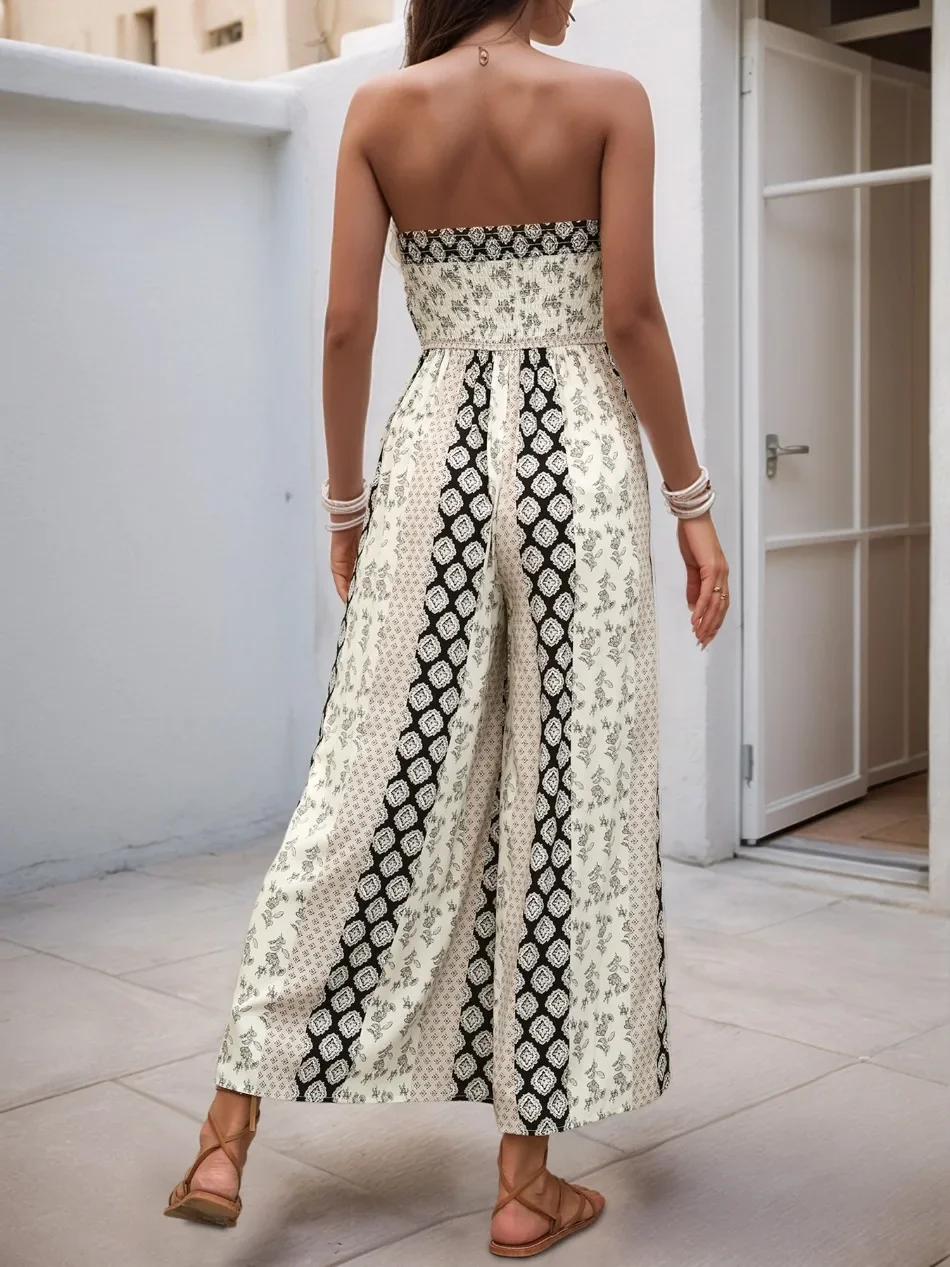 European and American Jumpsuits for Women Clothing Vacation Style Sleeveless Tube Top Geometric Printing Jumpsuit