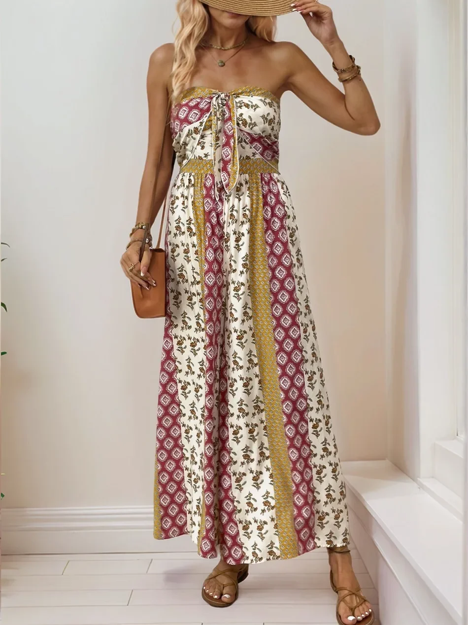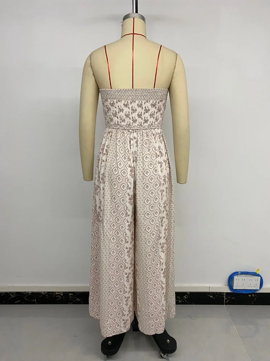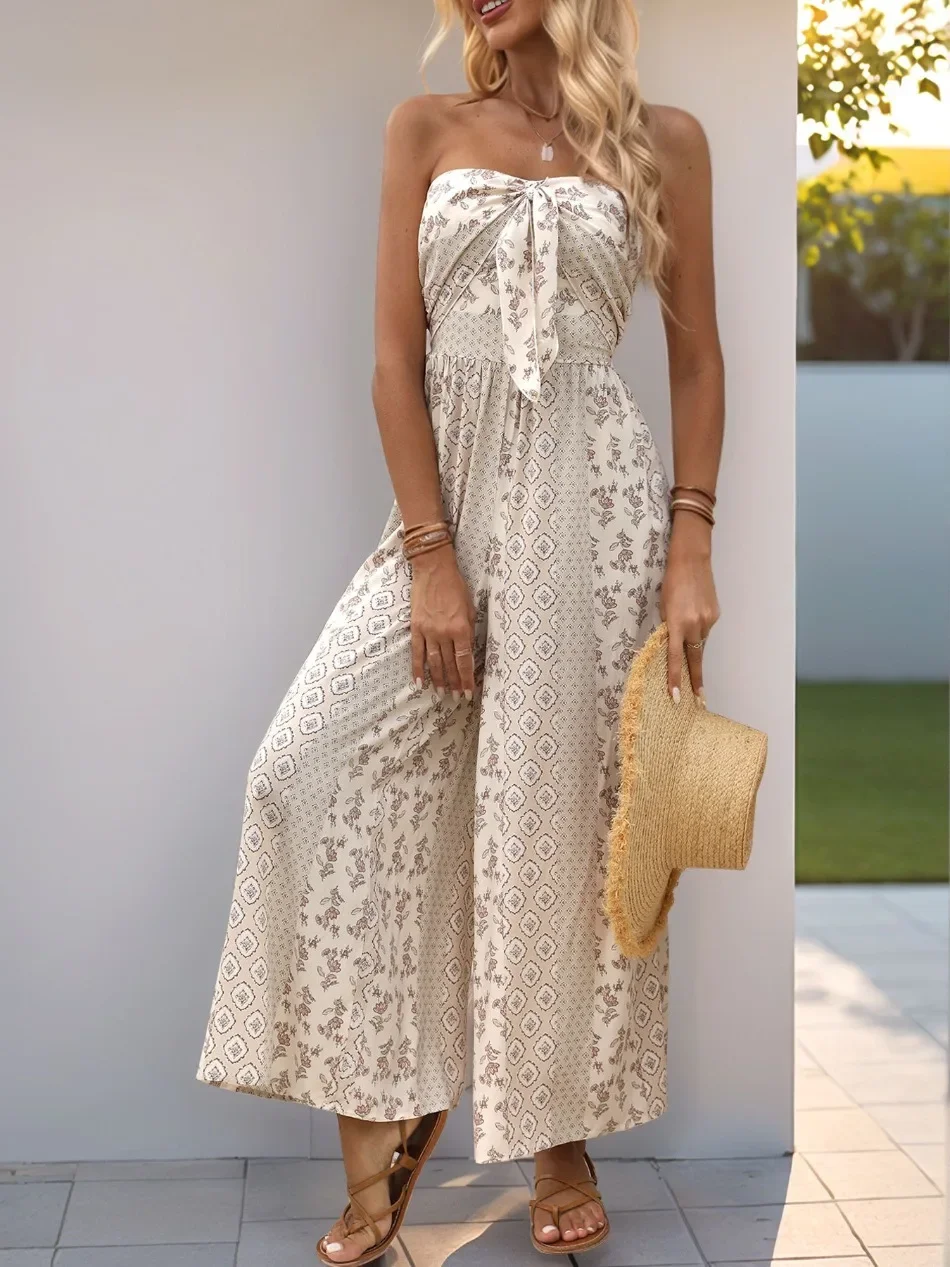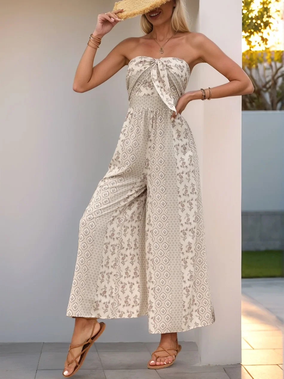 European and American Jumpsuits for Women Clothing Vacation Style Sleeveless Tube Top Geometric Printing Jumpsuit