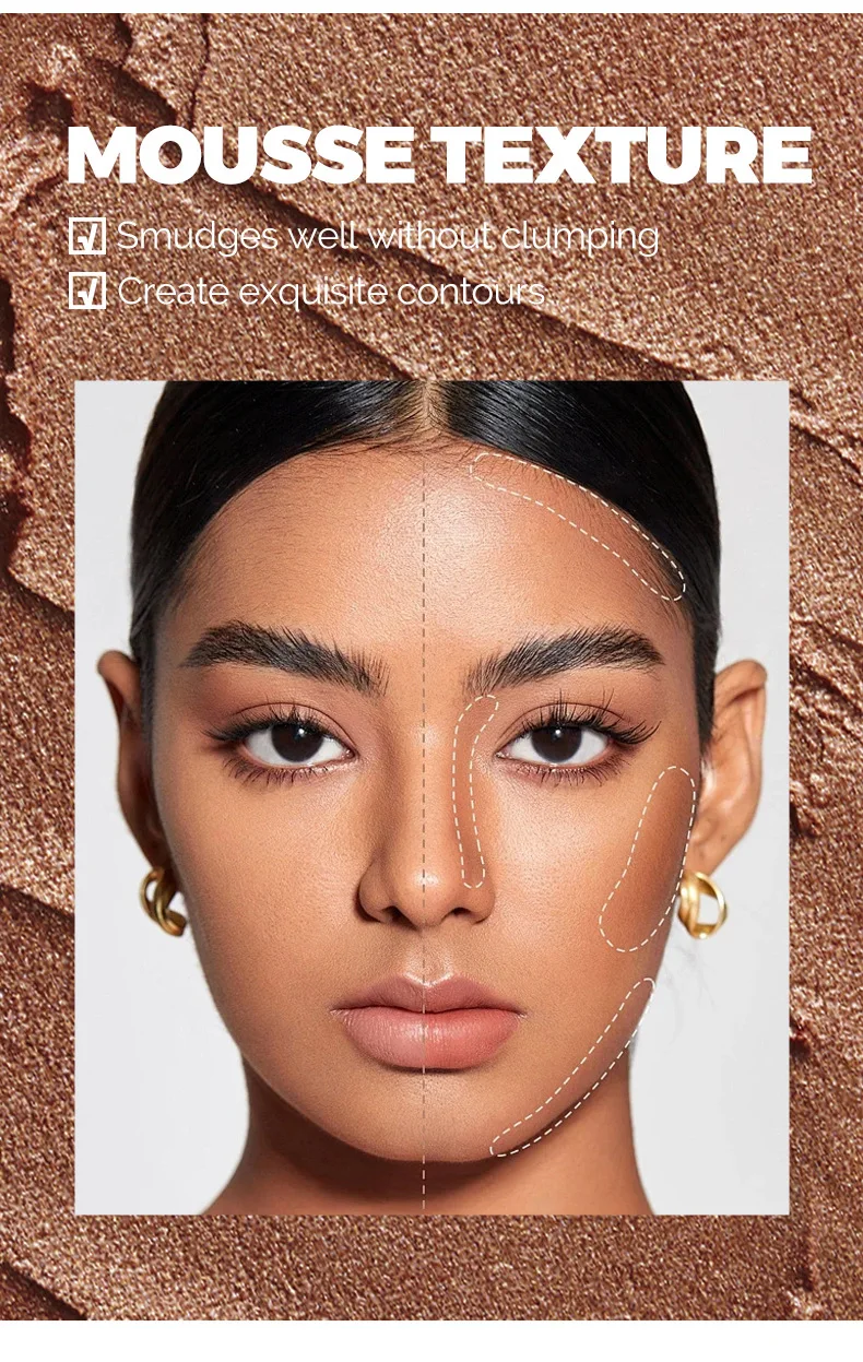 Achieve a flawless, sculpted look with our Mousse Bronzer in a soft matte cement brown shade. This lightweight, creamy formula blends effortlessly for a smooth, natural contour that enhances your facial features. Perfect for defining your nose, cheeks, and jawline, it delivers a seamless 3D effect and long-lasting wear. Ideal for all skin tones and easy to apply for that professional finish every time.