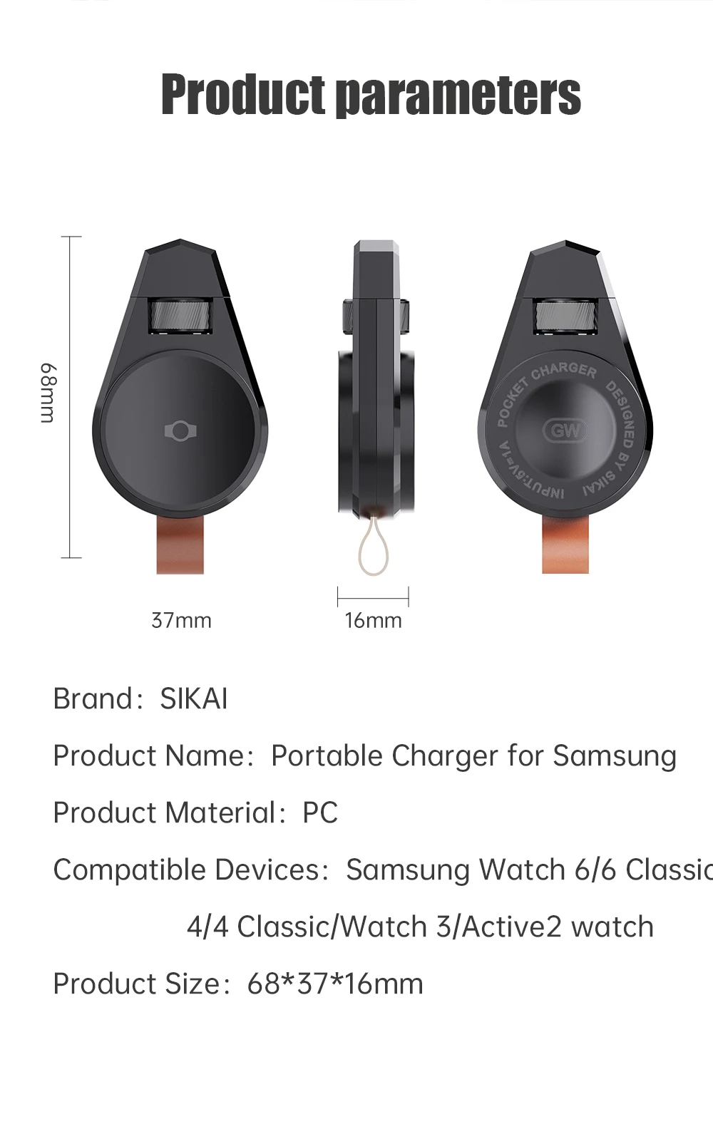 Compact and portable magnetic charging dock for Samsung Galaxy Watch 7. Features USB-C connection, fast wireless charging, and smart watch accessory compatibility.